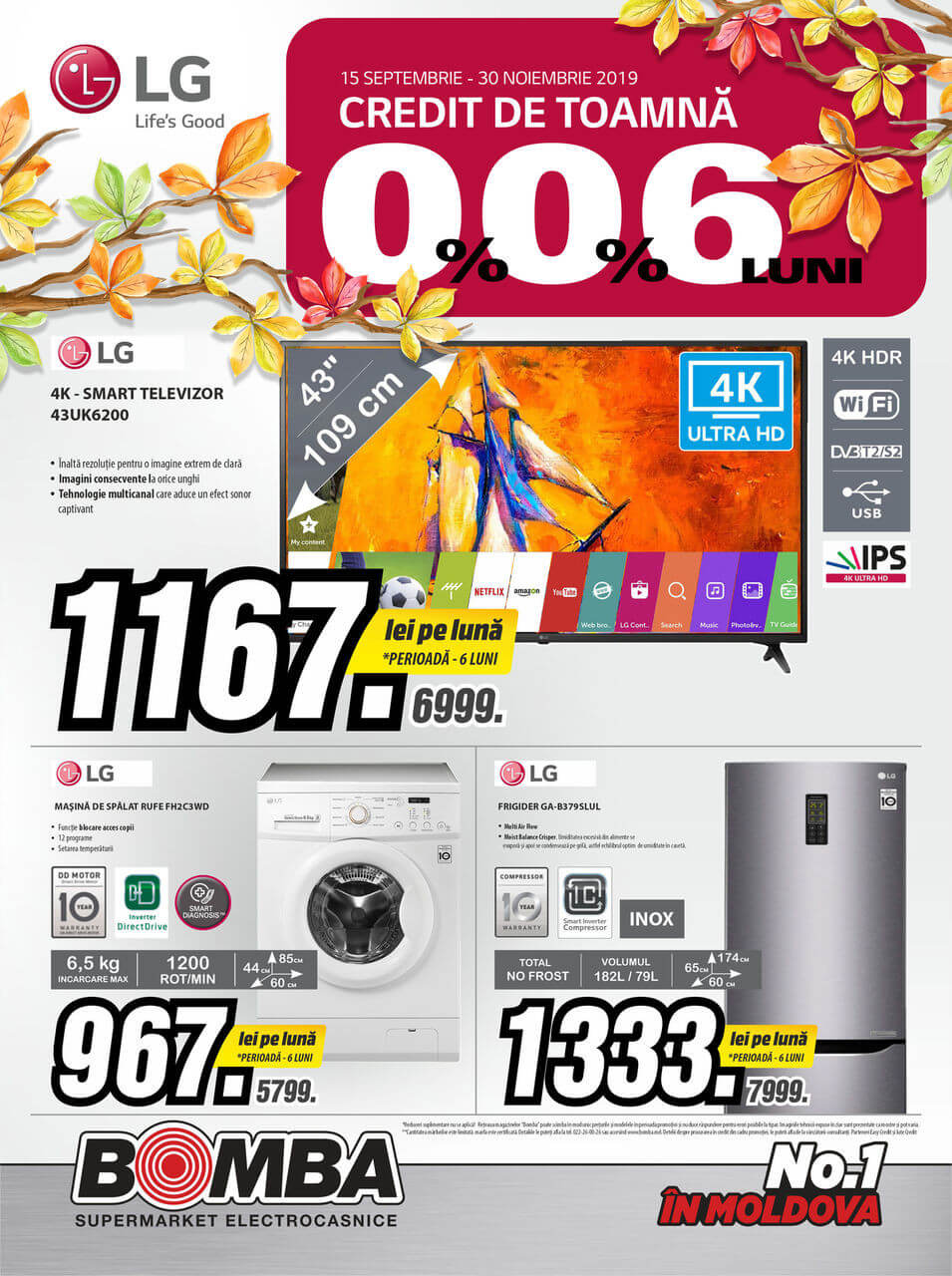 Răsfoiți acest catalog Bomba actual în perioada 02.10.2019 - 30.11.2019 pentru a vedea ultimele oferte. În paginile 0 revistei online veți găsi cele mai recente cataloage și oferte din categoria Electronice și Electrocasnice.