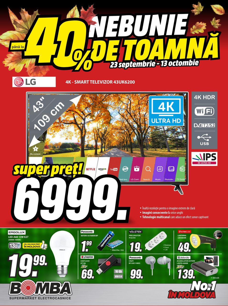 Răsfoiți acest catalog Bomba actual în perioada 24.09.2019 - 13.10.2019 pentru a vedea ultimele oferte. În paginile 0 revistei online veți găsi cele mai recente cataloage și oferte din categoria Electronice și Electrocasnice.