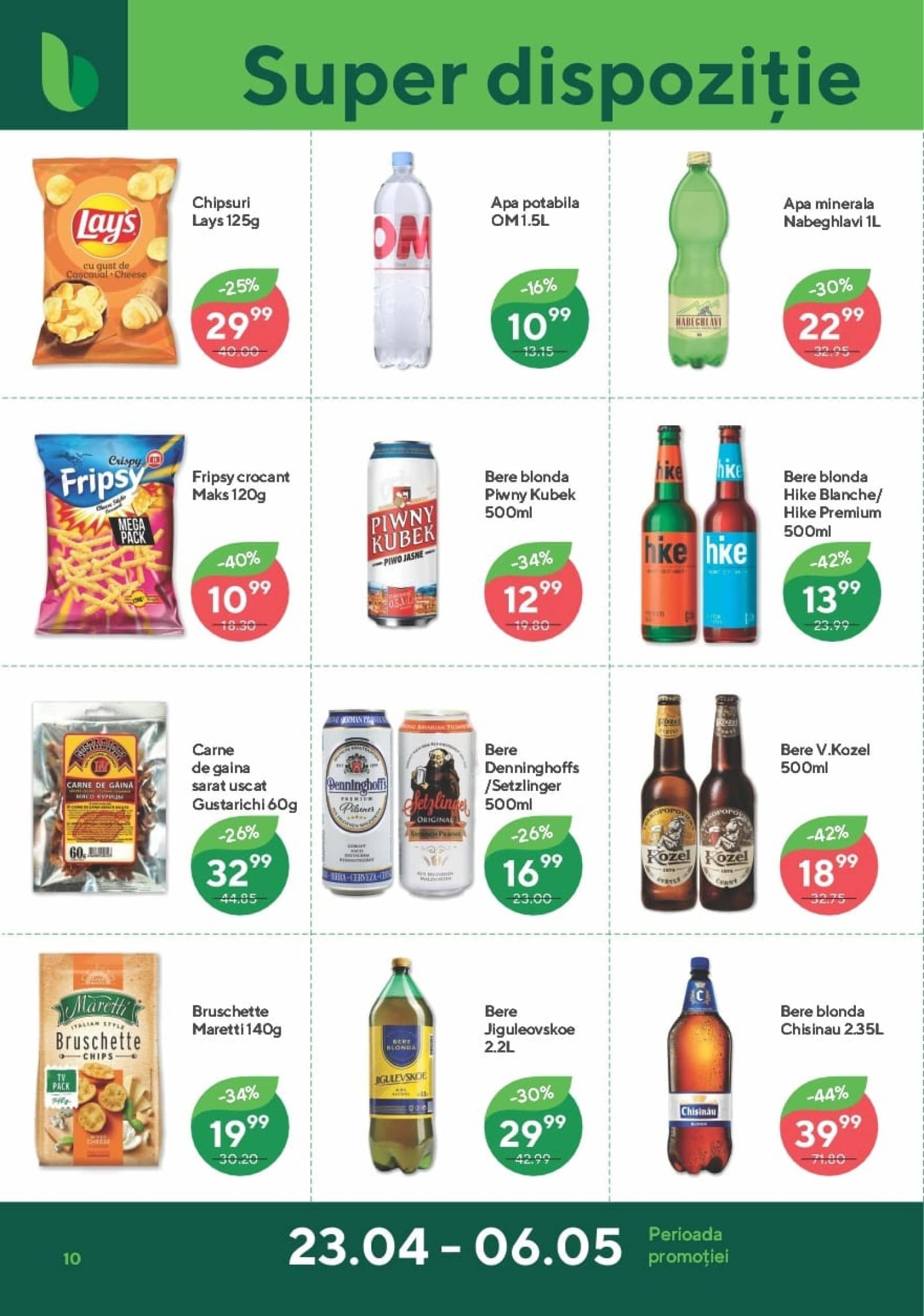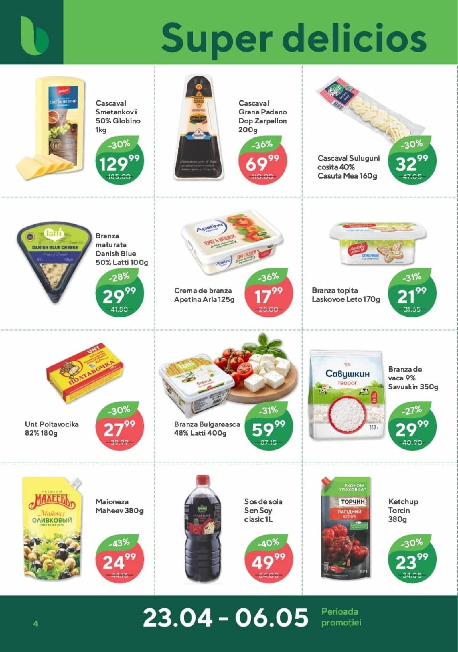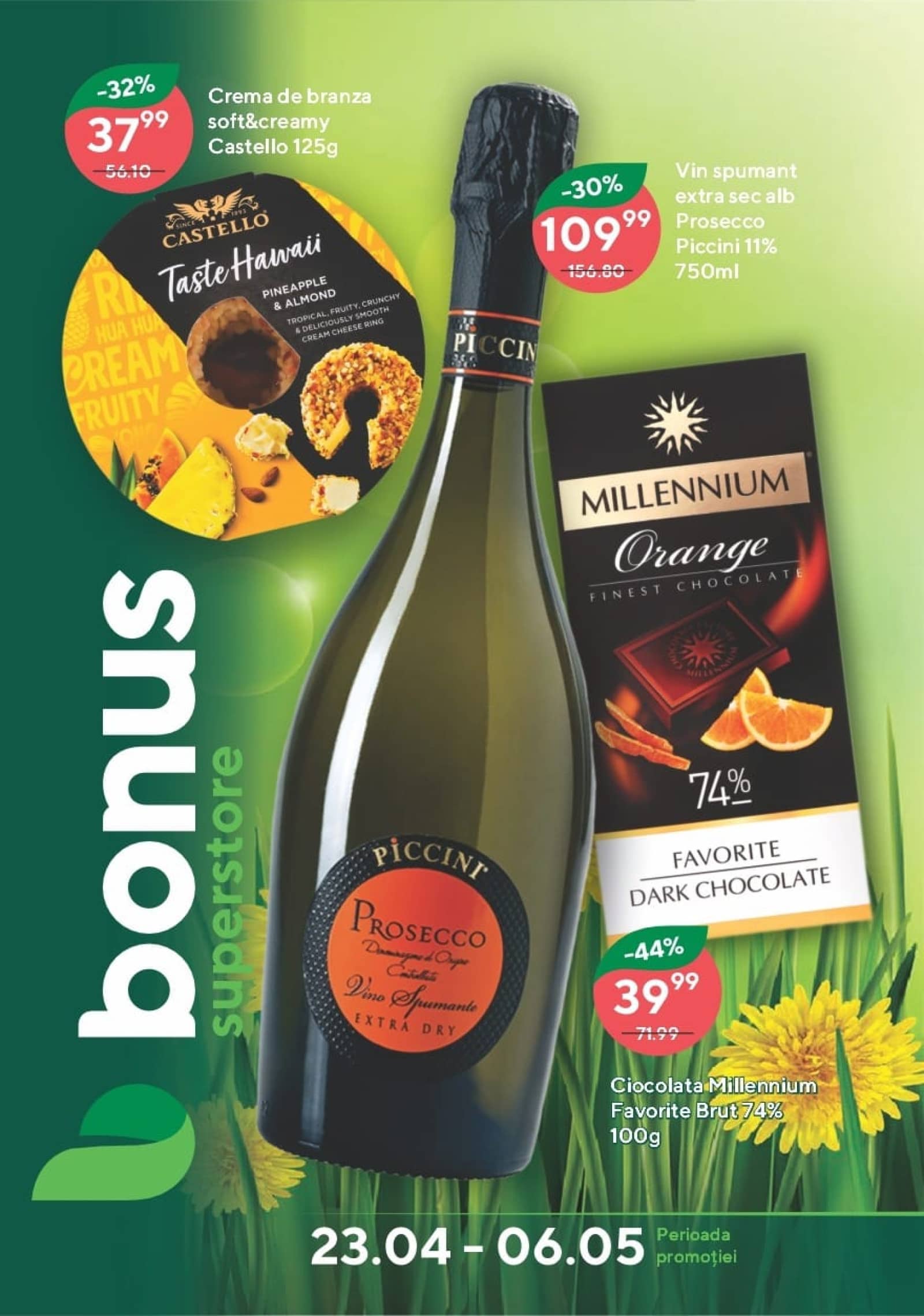 Răsfoiți acest catalog Bonus actual în perioada 23.04.2026 - 06.05.2026 pentru a vedea ultimele oferte. În paginile 16 revistei online veți găsi cele mai recente cataloage și oferte din categoria Supermarketuri. Acest catalog Bonus oferă reduceri la peste 416 produse la reducere Bonus și astfel beneficiați de cea mai bună ofertă la lucrurile pe care le cumpărați! În pagina actuală veți găsi promoții la Vin, vin alb, vin spumant, Vin frizzante, Prosecco, ciocolată, ciocolată neagră, Brânză, Cașcaval, brânză cremoasă, cremă de brânză. Catalog Bonus oferă multe alte promoții la produse lista o puteti gasi mai jos.