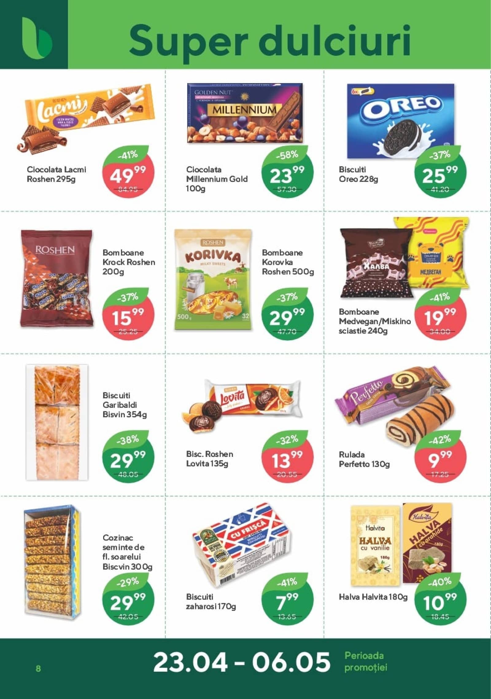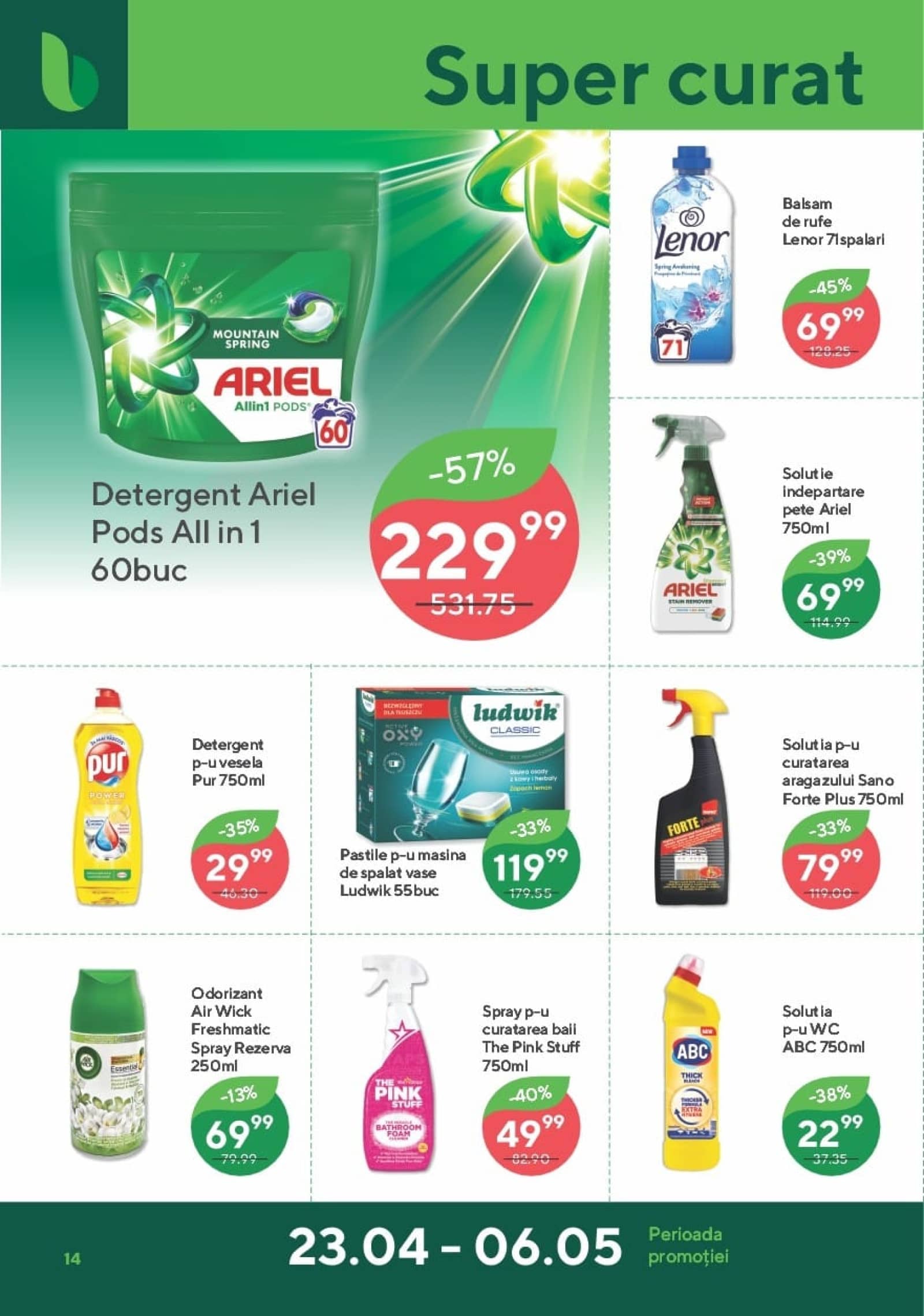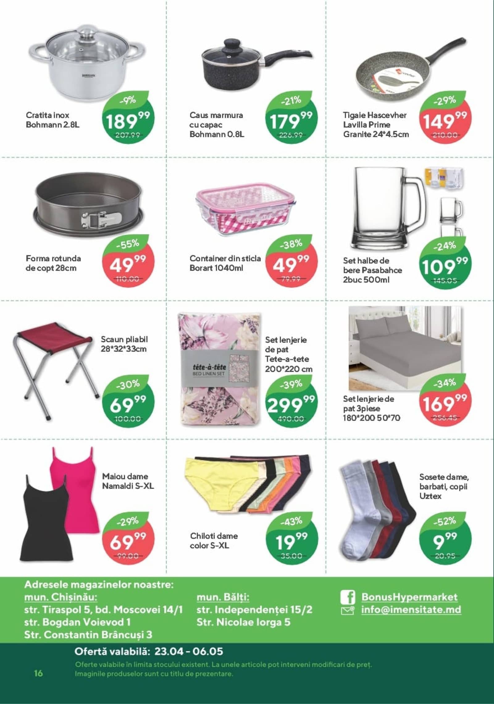 Răsfoiți acest catalog Bonus actual în perioada 23.04.2026 - 06.05.2026 pentru a vedea ultimele oferte. În paginile 16 revistei online veți găsi cele mai recente cataloage și oferte din categoria Supermarketuri. Acest catalog Bonus oferă reduceri la peste 416 produse la reducere Bonus și astfel beneficiați de cea mai bună ofertă la lucrurile pe care le cumpărați! În pagina actuală veți găsi promoții la Vin, vin alb, vin spumant, Vin frizzante, Prosecco, ciocolată, ciocolată neagră, Brânză, Cașcaval, brânză cremoasă, cremă de brânză. Catalog Bonus oferă multe alte promoții la produse lista o puteti gasi mai jos.