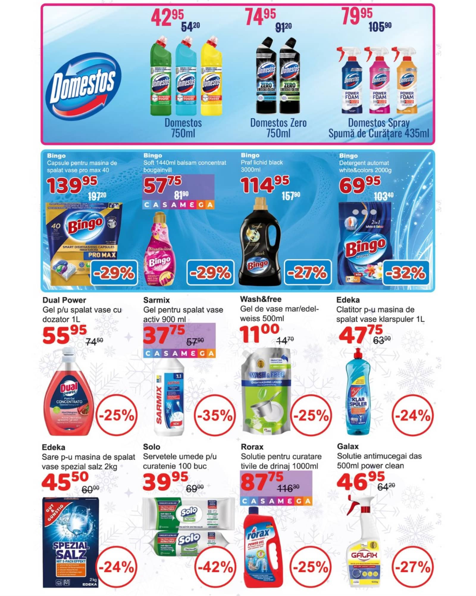 Răsfoiți acest catalog Casa Curata actual în perioada 17.12.2025 - 13.01.2026 pentru a vedea ultimele oferte. În paginile 20 revistei online veți găsi cele mai recente cataloage și oferte din categoria Sănătate și Frumusețe. Acest catalog Casa Curata oferă reduceri la peste 521 produse la reducere Casa Curata și astfel beneficiați de cea mai bună ofertă la lucrurile pe care le cumpărați! În pagina actuală veți găsi promoții la Degresant, Soluție curățare, Soluție curățare, Detergent geam (Soluție/Spray geamuri), Spray curățenie, Tresemme, Șampon, Tresemme. Catalog Casa Curata oferă multe alte promoții la produse lista o puteti gasi mai jos.
