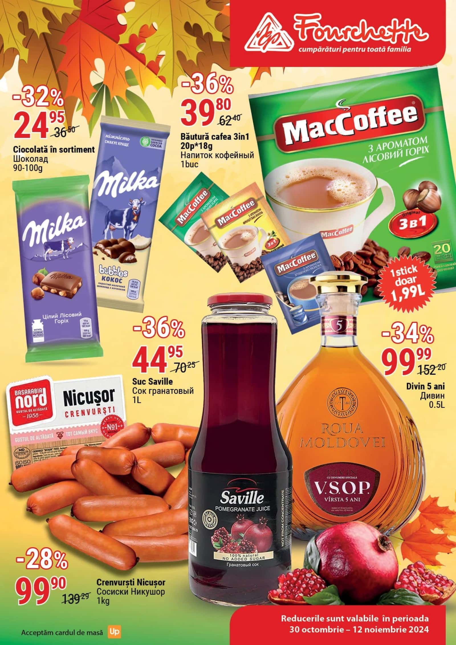Răsfoiți acest catalog Fourchette actual în perioada 30.10.2024 - 12.11.2024 pentru a vedea ultimele oferte. În paginile 12 revistei online veți găsi cele mai recente cataloage și oferte din categoria Supermarketuri.