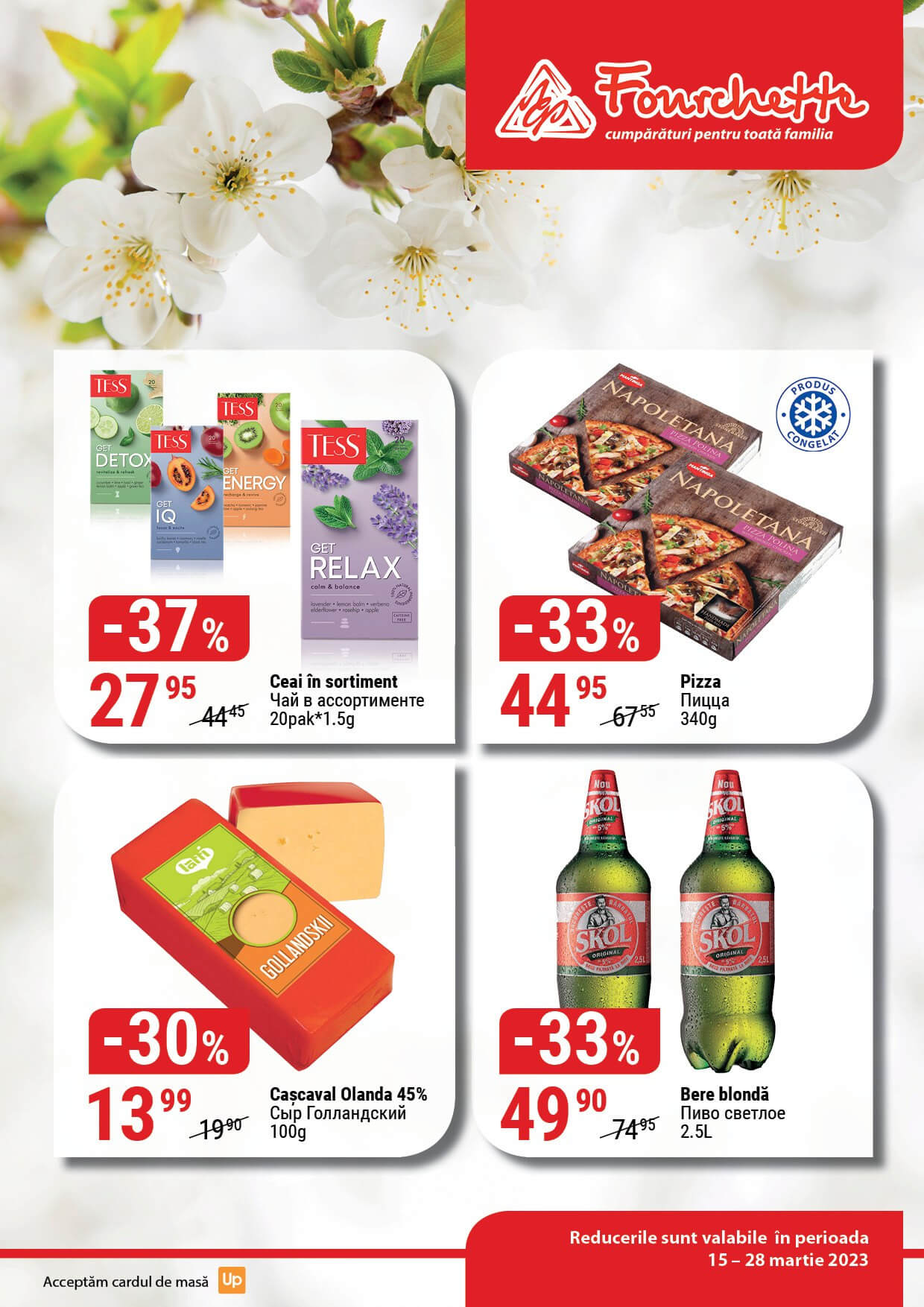 Răsfoiți acest catalog Fourchette actual în perioada 15.03.2023 - 28.03.2023 pentru a vedea ultimele oferte. În paginile 0 revistei online veți găsi cele mai recente cataloage și oferte din categoria Supermarketuri.