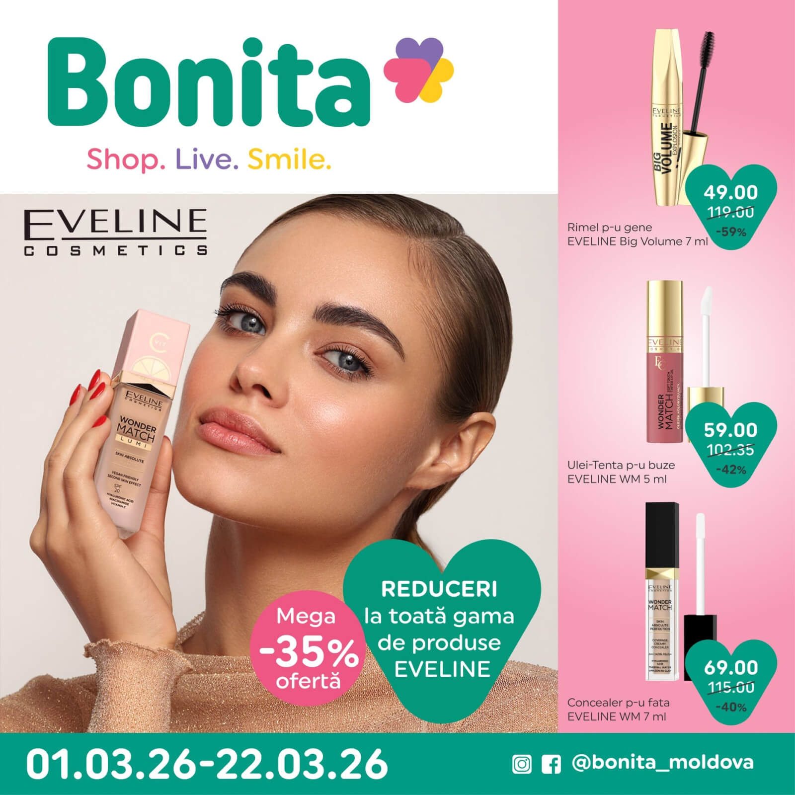 Răsfoiți acest catalog Imparatia Curateniei actual în perioada 02.03.2026 - 22.03.2026 pentru a vedea ultimele oferte. În paginile 12 revistei online veți găsi cele mai recente cataloage și oferte din categoria Sănătate și Frumusețe. Acest catalog Imparatia Curateniei oferă reduceri la peste 383 produse la reducere Imparatia Curateniei și astfel beneficiați de cea mai bună ofertă la lucrurile pe care le cumpărați! În pagina actuală veți găsi promoții la Eveline, Rimel, Eveline, Ulei pentru buze, Tint pentru buze, Eveline, Concealer, Eveline, fond de ten. Catalog Imparatia Curateniei oferă multe alte promoții la produse lista o puteti gasi mai jos.