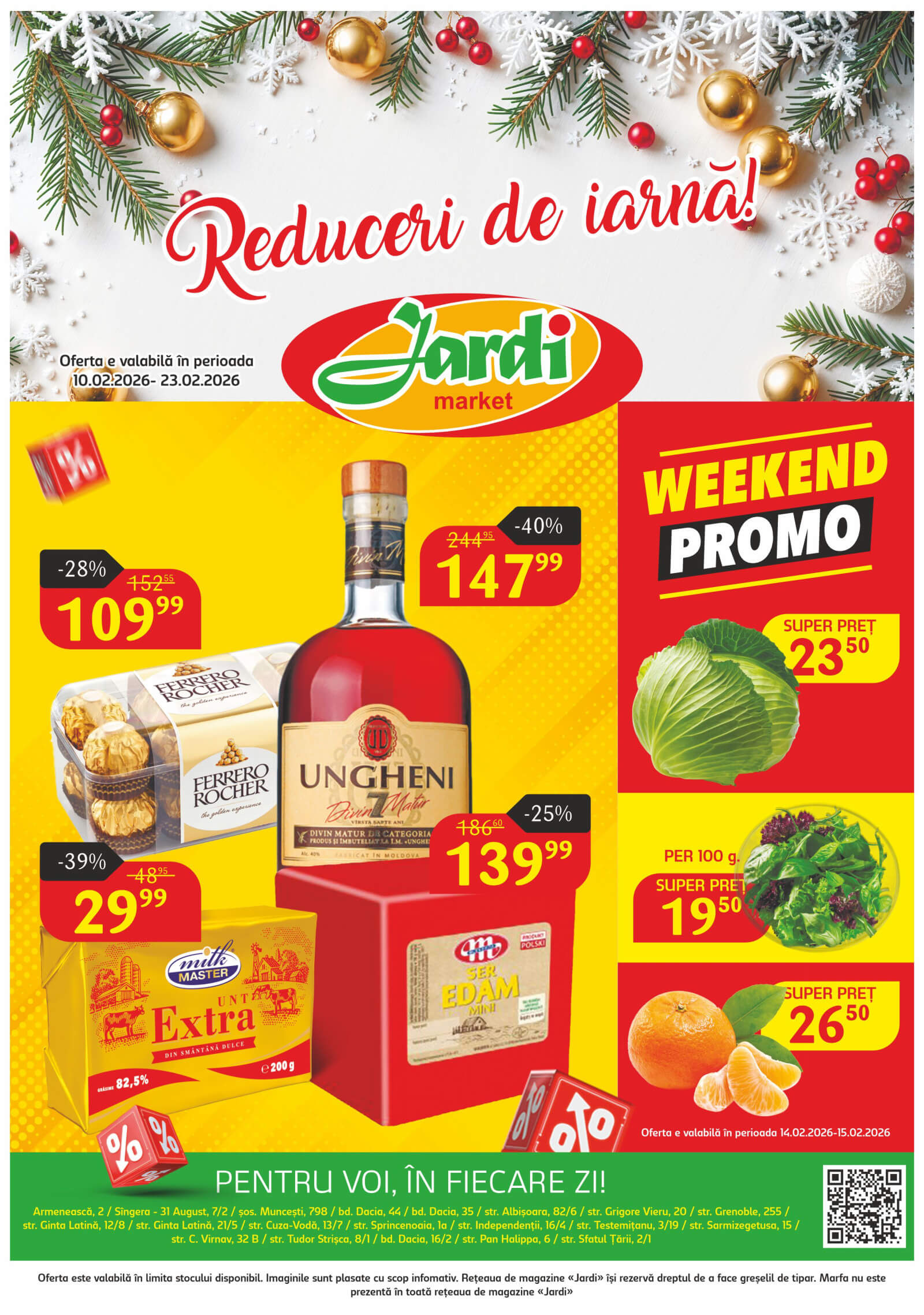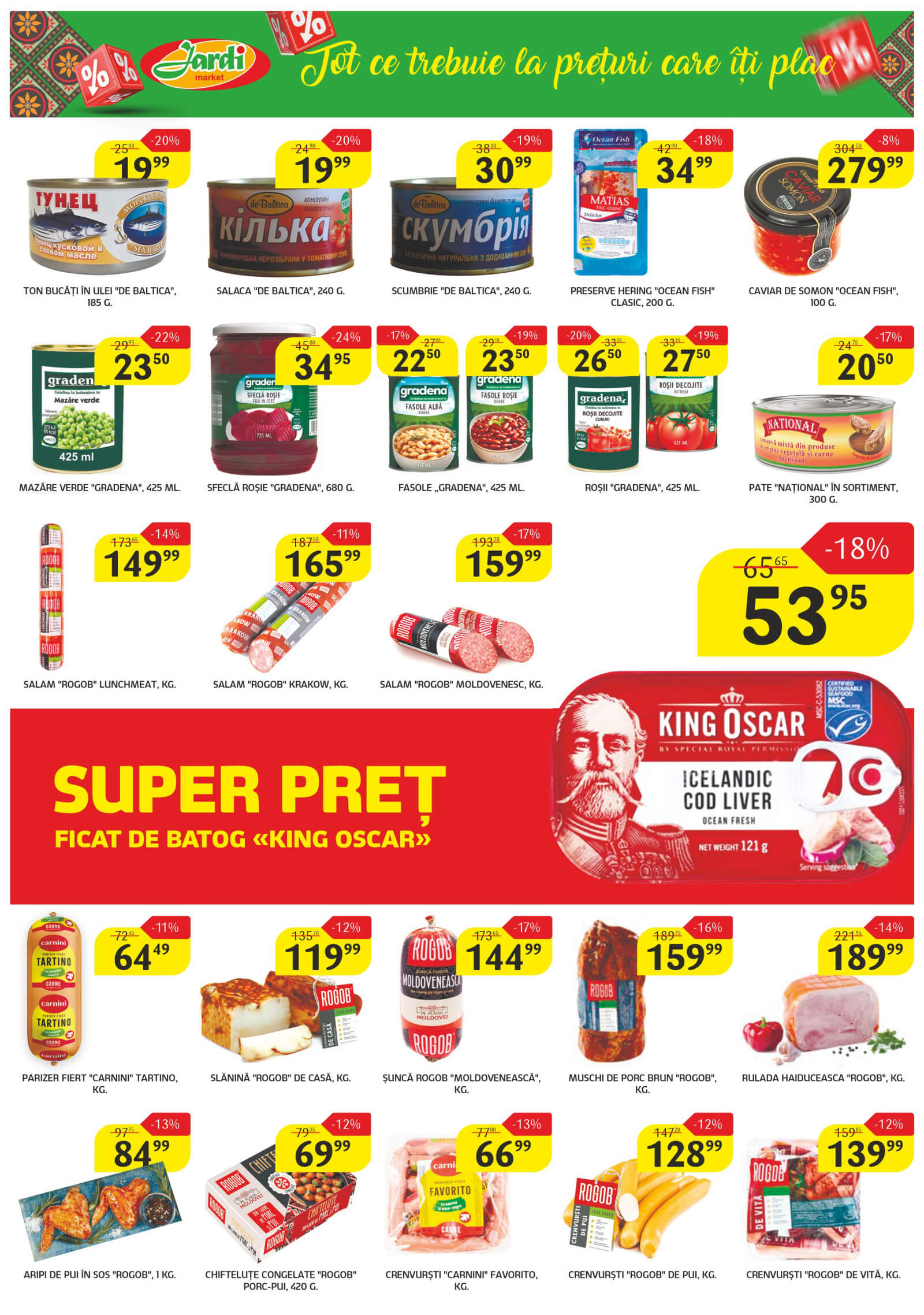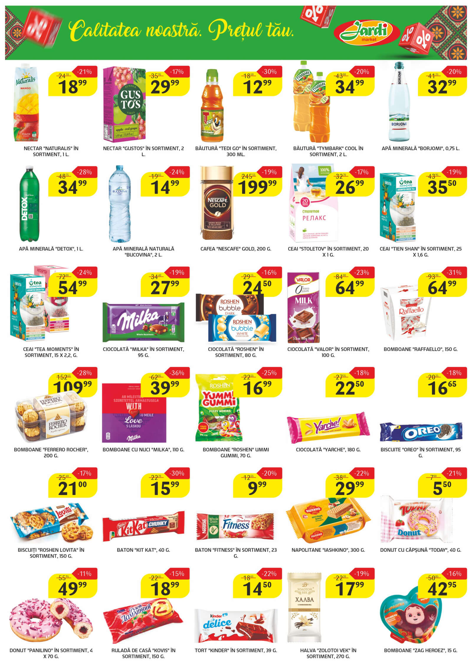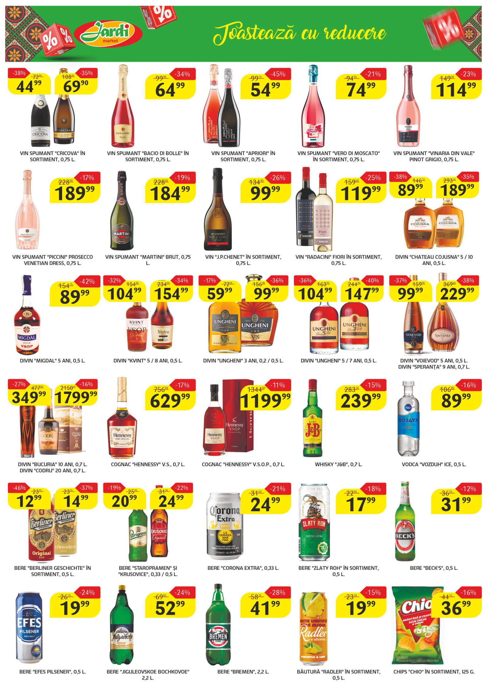 Răsfoiți acest catalog Jardi actual în perioada 10.02.2026 - 23.02.2026 pentru a vedea ultimele oferte. În paginile 8 revistei online veți găsi cele mai recente cataloage și oferte din categoria Supermarketuri. Acest catalog Jardi oferă reduceri la peste 159 produse la reducere Jardi și astfel beneficiați de cea mai bună ofertă la lucrurile pe care le cumpărați! În pagina actuală veți găsi promoții la bomboane, băutură spirtoasă, unt, Cașcaval, varză albă, salată, mandarine. Catalog Jardi oferă multe alte promoții la produse lista o puteti gasi mai jos.