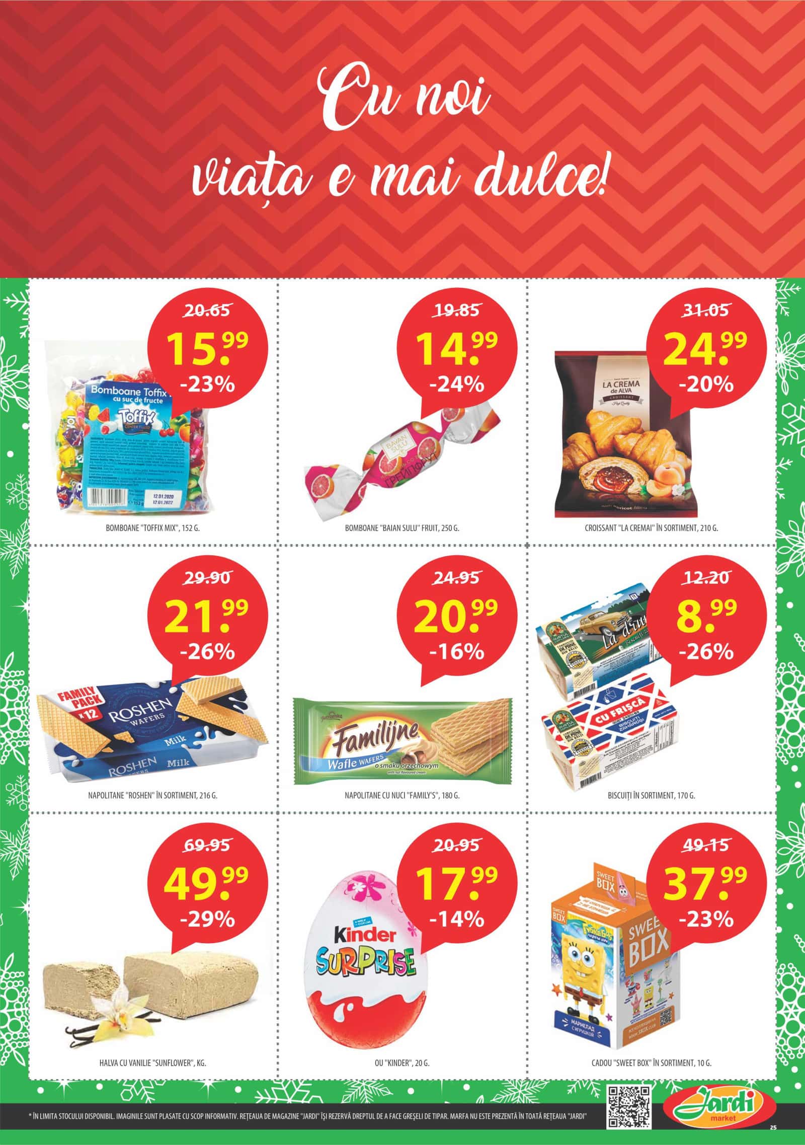 Răsfoiți acest catalog Jardi actual în perioada 17.12.2024 - 13.01.2025 pentru a vedea ultimele oferte. În paginile 28 revistei online veți găsi cele mai recente cataloage și oferte din categoria Supermarketuri.