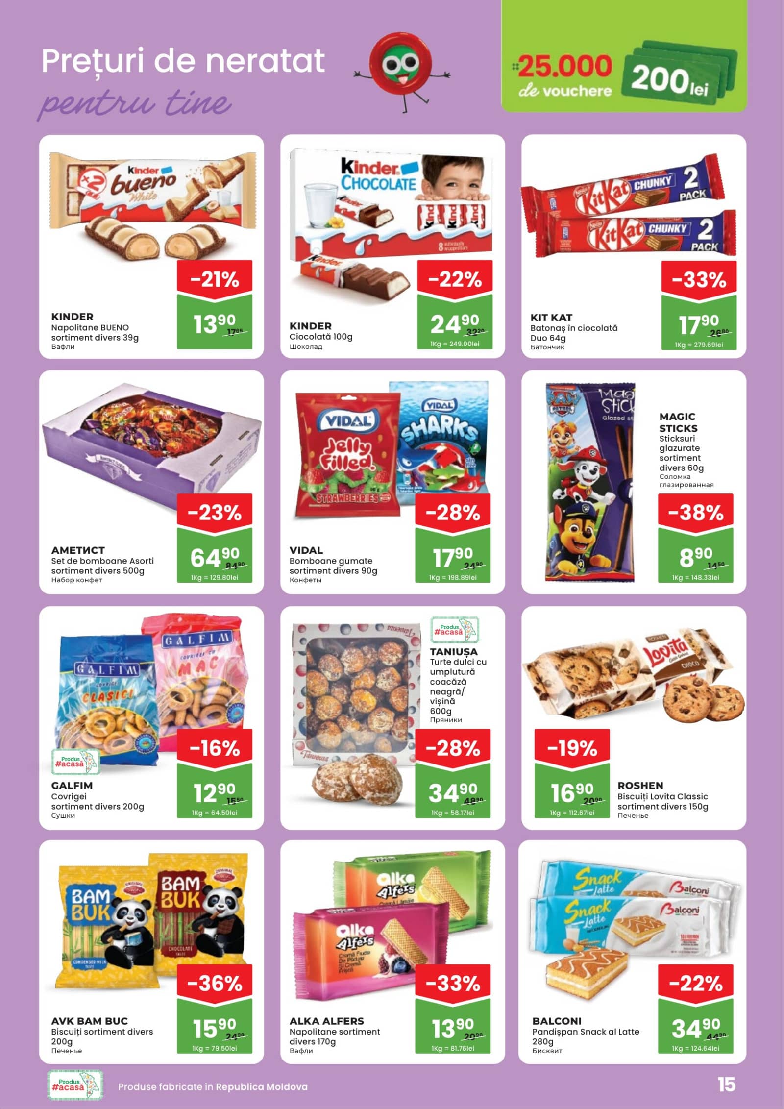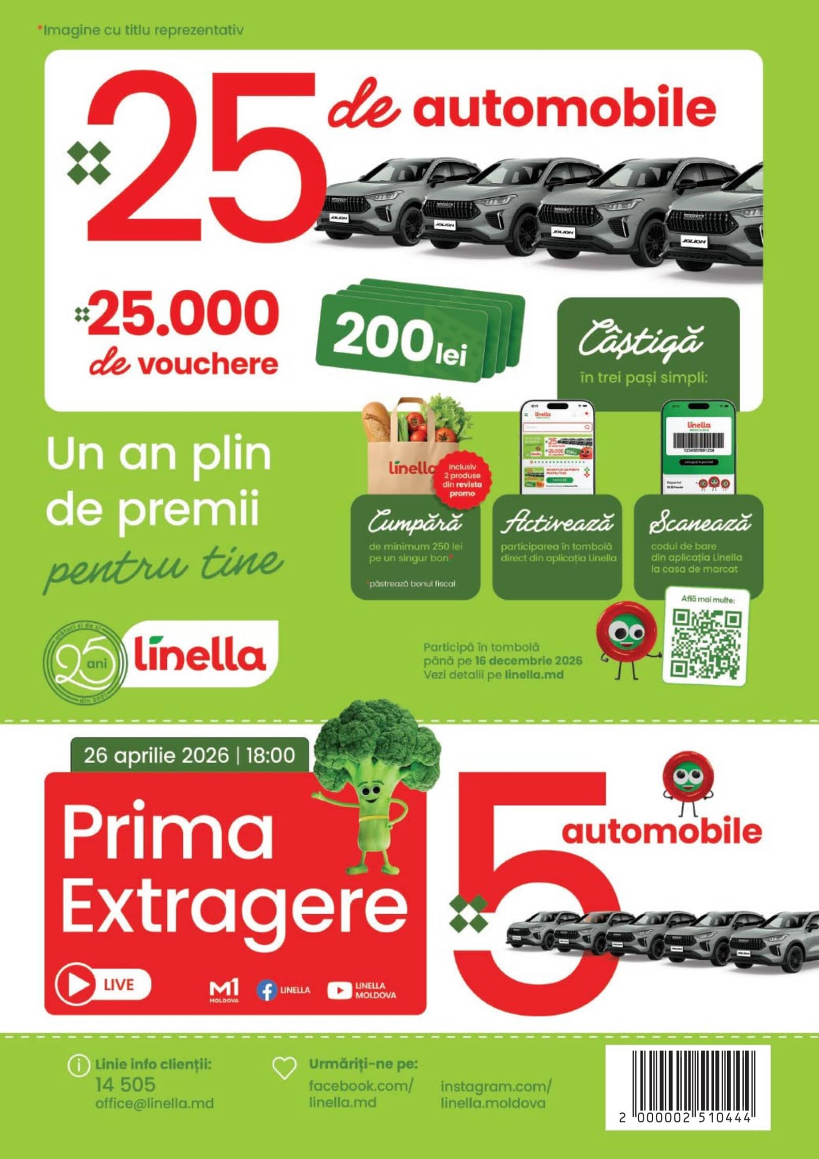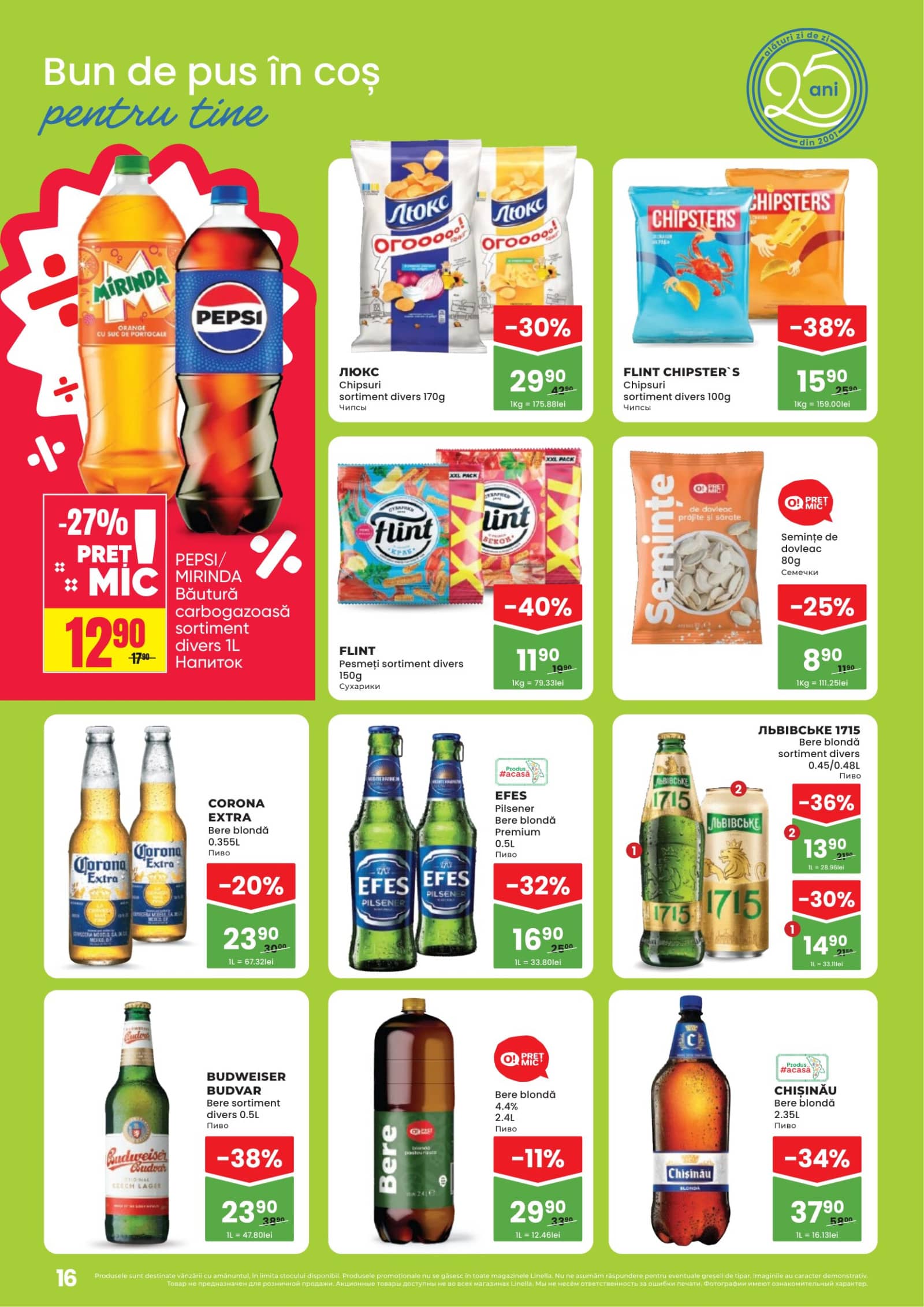 Răsfoiți acest catalog Linella actual în perioada 09.04.2026 - 22.04.2026 pentru a vedea ultimele oferte. În paginile 20 revistei online veți găsi cele mai recente cataloage și oferte din categoria Supermarketuri. Acest catalog Linella oferă reduceri la peste 530 produse la reducere Linella și astfel beneficiați de cea mai bună ofertă la lucrurile pe care le cumpărați! În pagina actuală veți găsi promoții la Produs de patiserie, 3833,Panettone, Brânză, Cașcaval, Salam, Carmez, Salam fiert-afumat, Salam Servelat, brandy, băutură spirtoasă, Divin, V.S.O.P. 5 Ani. Catalog Linella oferă multe alte promoții la produse lista o puteti gasi mai jos.