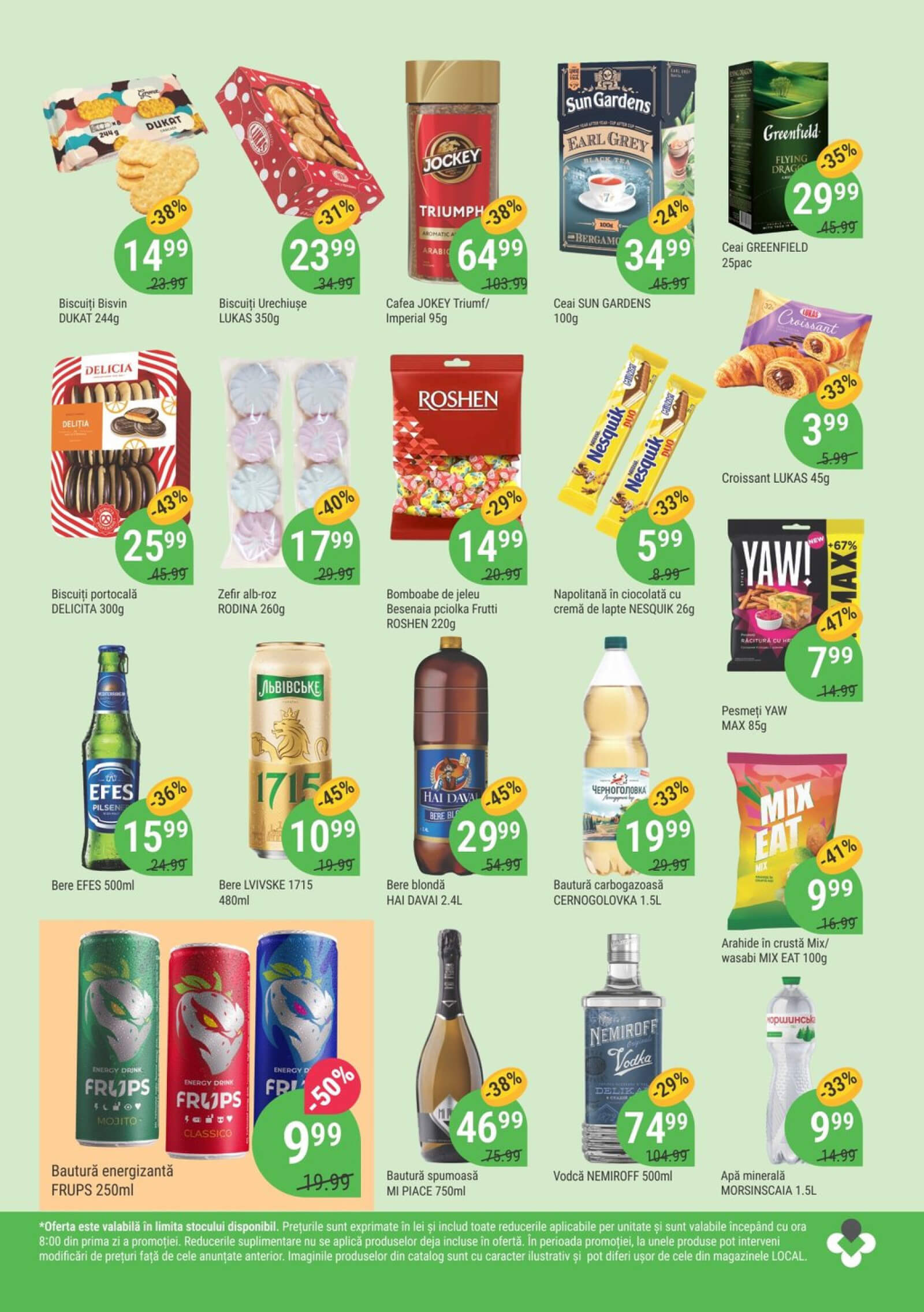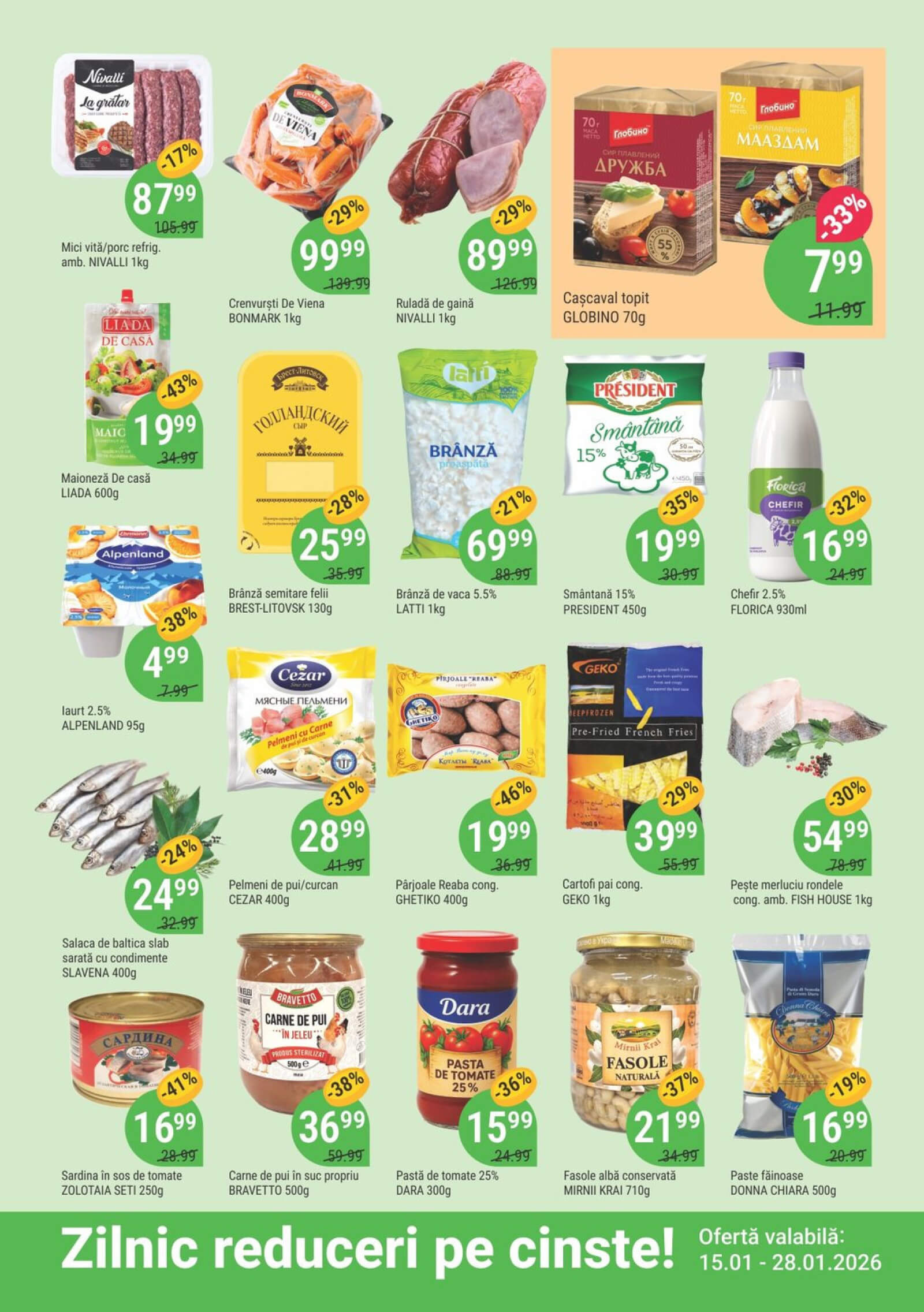 Răsfoiți acest catalog Local Discounter actual în perioada 15.01.2026 - 28.01.2026 pentru a vedea ultimele oferte. În paginile 4 revistei online veți găsi cele mai recente cataloage și oferte din categoria Supermarketuri. Acest catalog Local Discounter oferă reduceri la peste 125 produse la reducere Local Discounter și astfel beneficiați de cea mai bună ofertă la lucrurile pe care le cumpărați! În pagina actuală veți găsi promoții la unt, Salam, Salam de Drogobâci, Salami, Carne, Carne de pui, aripi de pui, Aripi, Gaina, Conserve, Ton, Chips, Snacks, Snack, baton de ciocolată, ciocolată, bomboane, caramele, Cafea, Lavazza, Suc, băutură răcoritoare, nectar, Naturalis, Băutură cu suc, Vin, vin spumant, Cricova, brandy, Divin, whisky. Catalog Local Discounter oferă multe alte promoții la produse lista o puteti gasi mai jos.