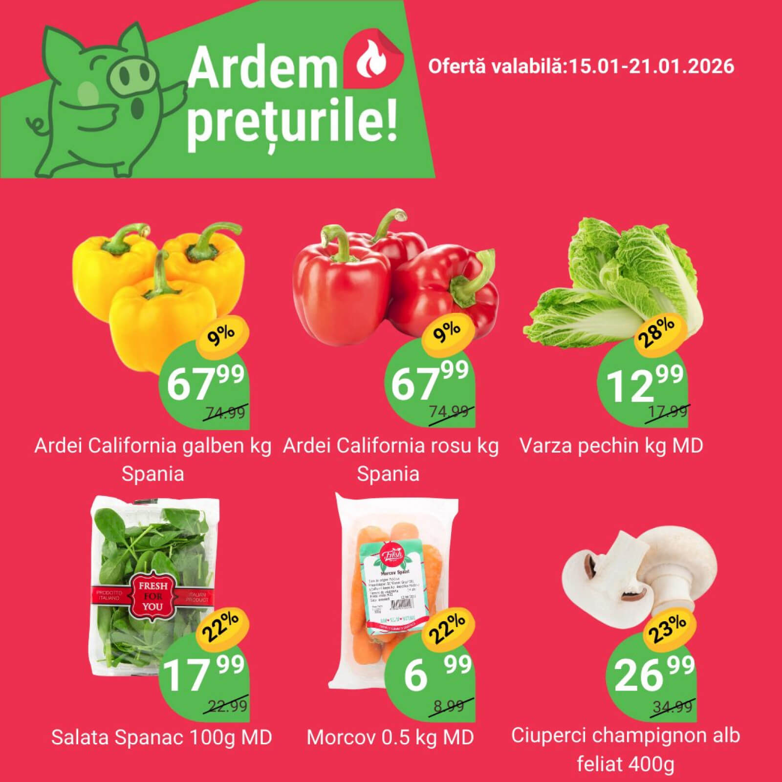 Răsfoiți acest catalog Local Discounter actual în perioada 15.01.2026 - 21.01.2026 pentru a vedea ultimele oferte. În paginile 2 revistei online veți găsi cele mai recente cataloage și oferte din categoria Supermarketuri. Acest catalog Local Discounter oferă reduceri la peste 26 produse la reducere Local Discounter și astfel beneficiați de cea mai bună ofertă la lucrurile pe care le cumpărați! În pagina actuală veți găsi promoții la ardei gras, Legume, Ciuperci, champignon, Rădăcină, Morcov, Legume, Verdeață, salată, spanac, Legume, Varză, Varză chinezească, Legume, Legume, ardei gras, ardei, Legume, ardei. Catalog Local Discounter oferă multe alte promoții la produse lista o puteti gasi mai jos.