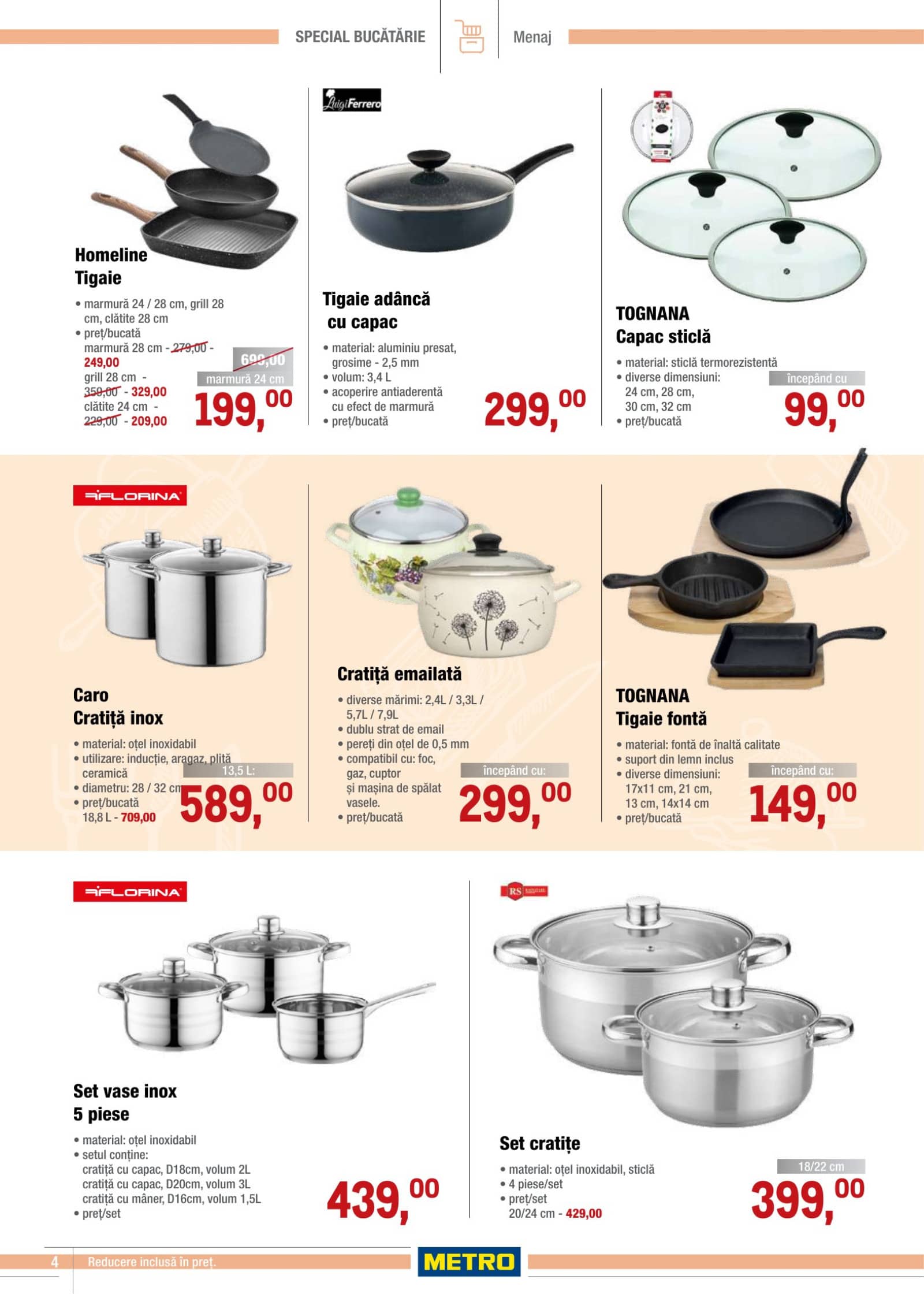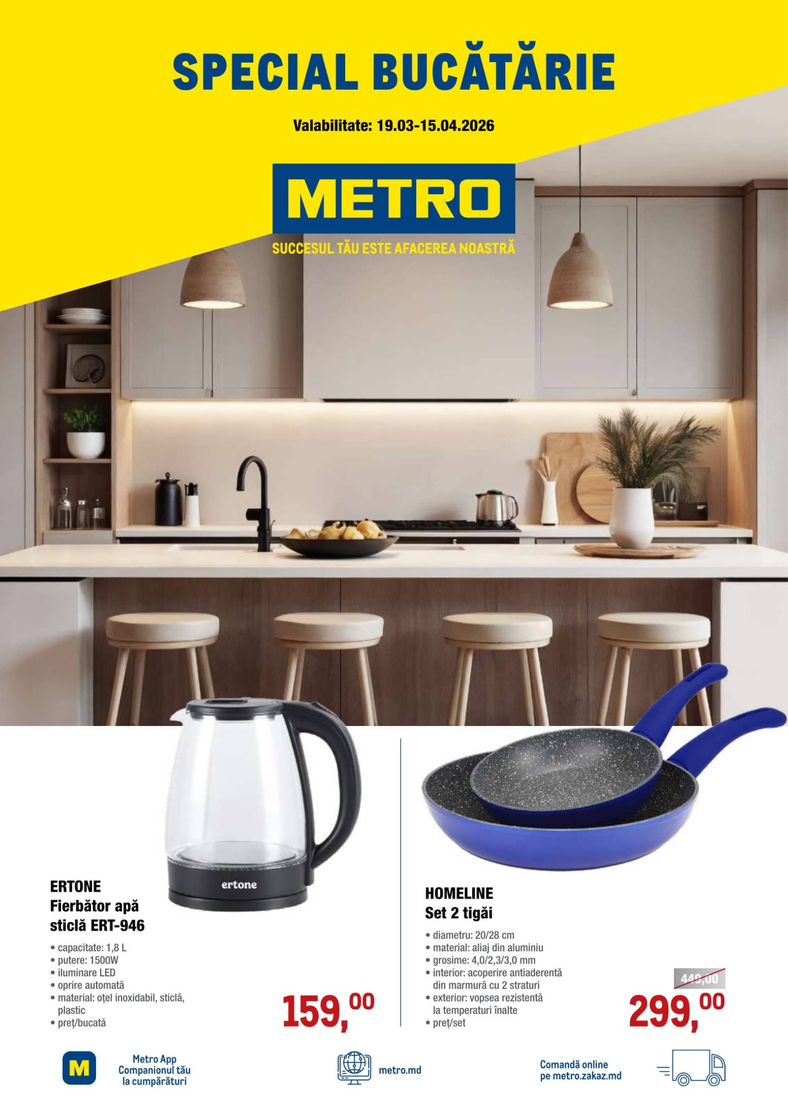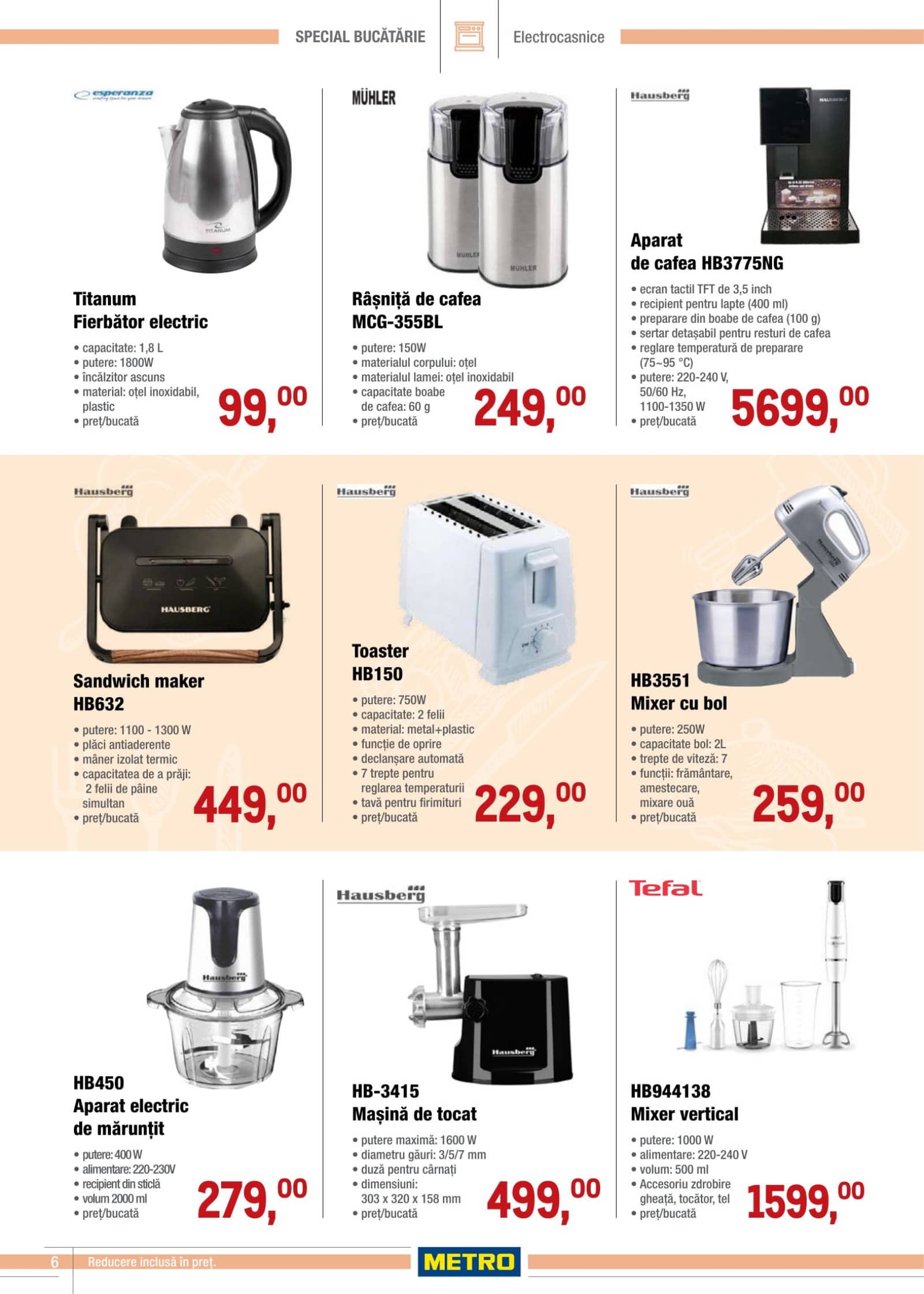 Răsfoiți acest catalog METRO actual în perioada 19.03.2026 - 15.04.2026 pentru a vedea ultimele oferte. În paginile 10 revistei online veți găsi cele mai recente cataloage și oferte din categoria Sănătate și Frumusețe. Acest catalog METRO oferă reduceri la peste 105 produse la reducere METRO și astfel beneficiați de cea mai bună ofertă la lucrurile pe care le cumpărați! În pagina actuală veți găsi promoții la fierbator de apa ( electric ), tigaie. Catalog METRO oferă multe alte promoții la produse lista o puteti gasi mai jos.