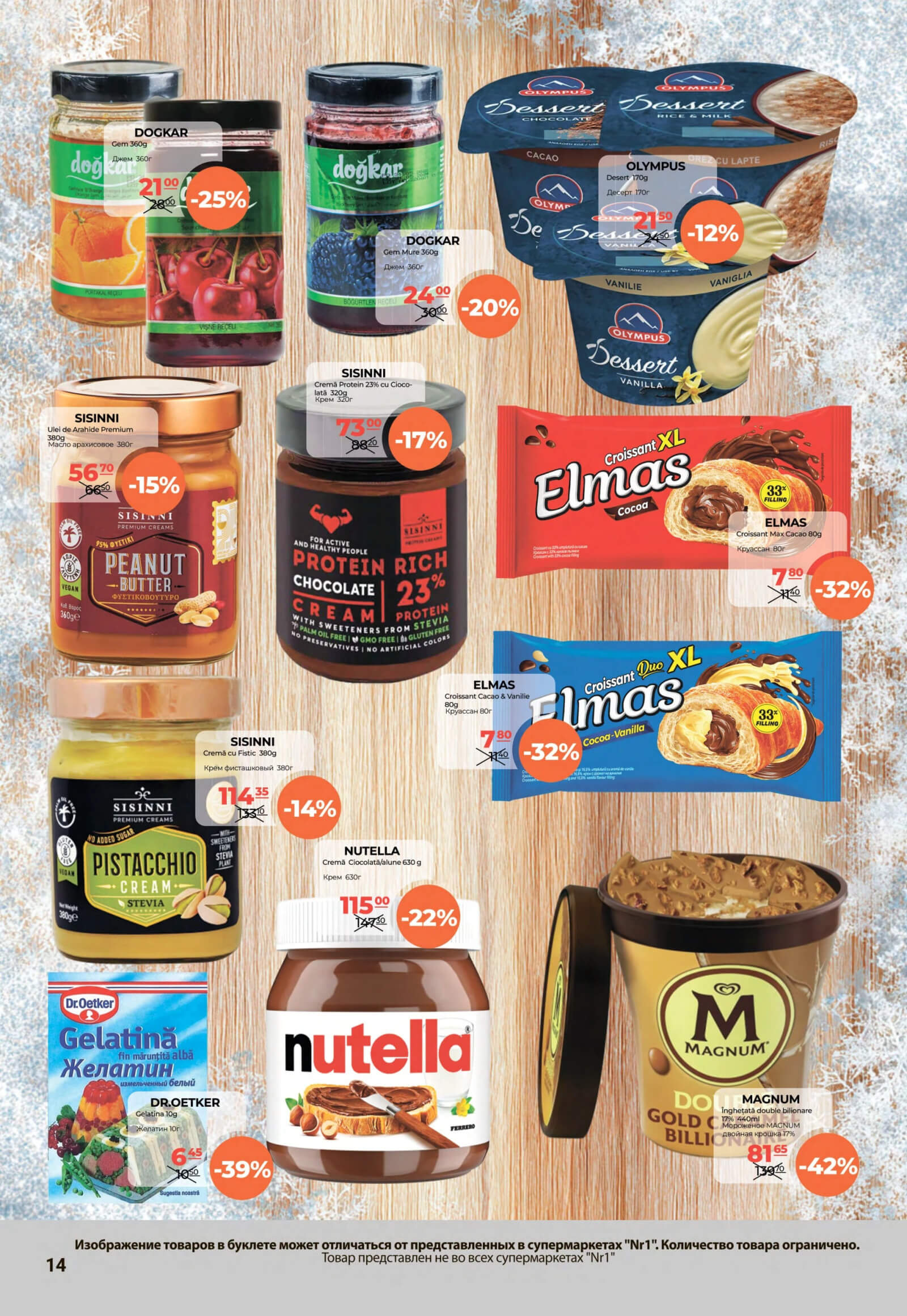 Răsfoiți acest catalog Nr1 actual în perioada 16.01.2026 - 31.01.2026 pentru a vedea ultimele oferte. În paginile 32 revistei online veți găsi cele mai recente cataloage și oferte din categoria Supermarketuri. Acest catalog Nr1 oferă reduceri la peste 1065 produse la reducere Nr1 și astfel beneficiați de cea mai bună ofertă la lucrurile pe care le cumpărați! În pagina actuală veți găsi promoții la Vin, vin roşu, Brânză, Cașcaval, brânză maturată, Brânză tare, Brânză Maazdam, ceafă afumată. Catalog Nr1 oferă multe alte promoții la produse lista o puteti gasi mai jos.
