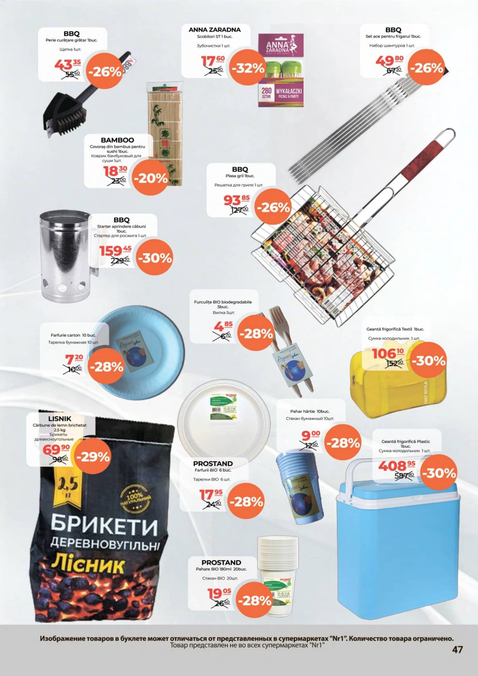 Răsfoiți acest catalog Nr1 actual în perioada 01.05.2026 - 15.05.2026 pentru a vedea ultimele oferte. În paginile 48 revistei online veți găsi cele mai recente cataloage și oferte din categoria Supermarketuri. Acest catalog Nr1 oferă reduceri la peste 1704 produse la reducere Nr1 și astfel beneficiați de cea mai bună ofertă la lucrurile pe care le cumpărați! În pagina actuală veți găsi promoții la salată, Verdeață, Accesorii pentru gratar, ketchup, Sos, Carne de pui, aripi de pui, Aripi, Carne de pui, aripi de pui, Aripi. Catalog Nr1 oferă multe alte promoții la produse lista o puteti gasi mai jos.