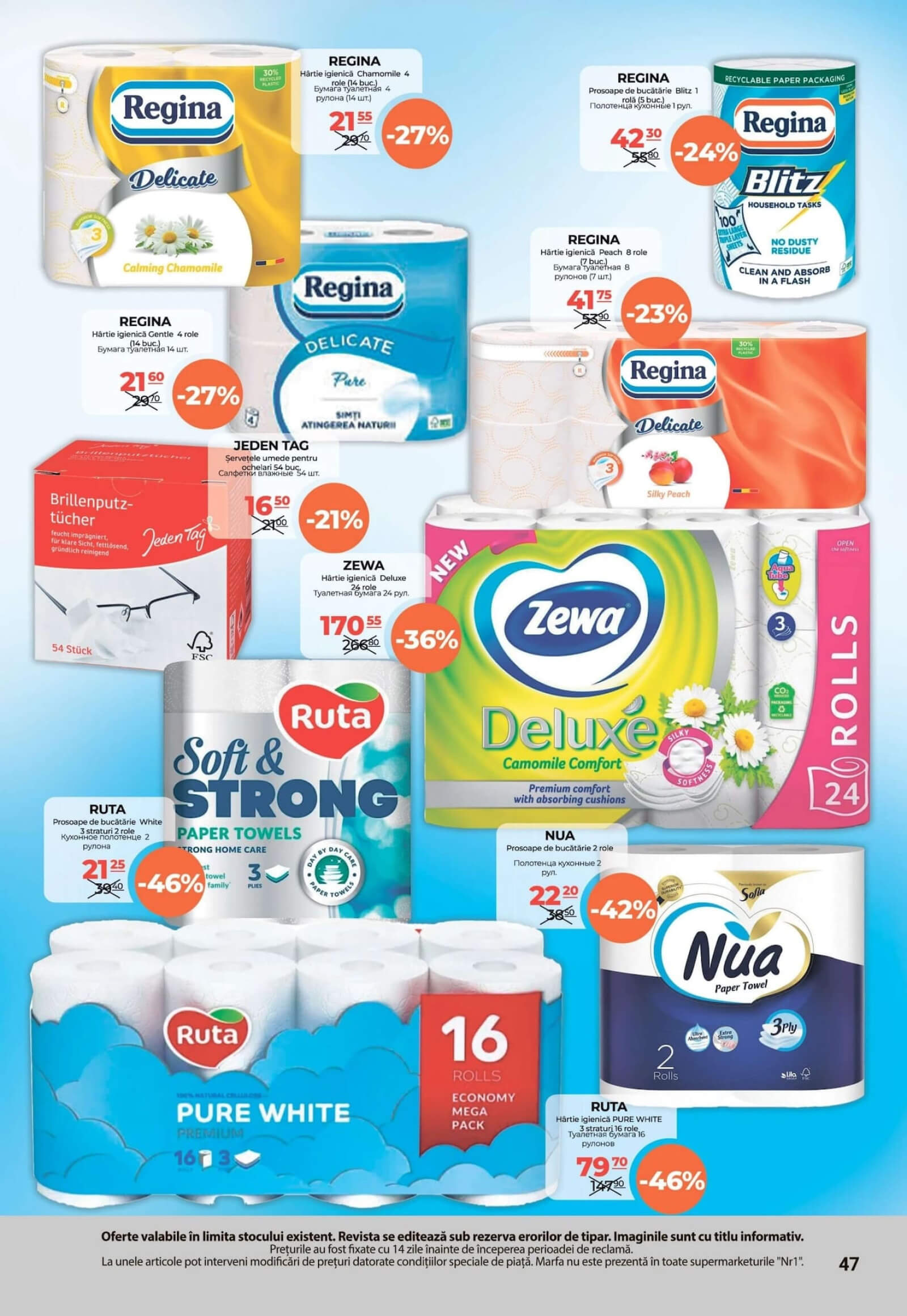 Răsfoiți acest catalog Nr1 actual în perioada 16.03.2025 - 31.03.2025 pentru a vedea ultimele oferte. În paginile 64 revistei online veți găsi cele mai recente cataloage și oferte din categoria Supermarketuri.