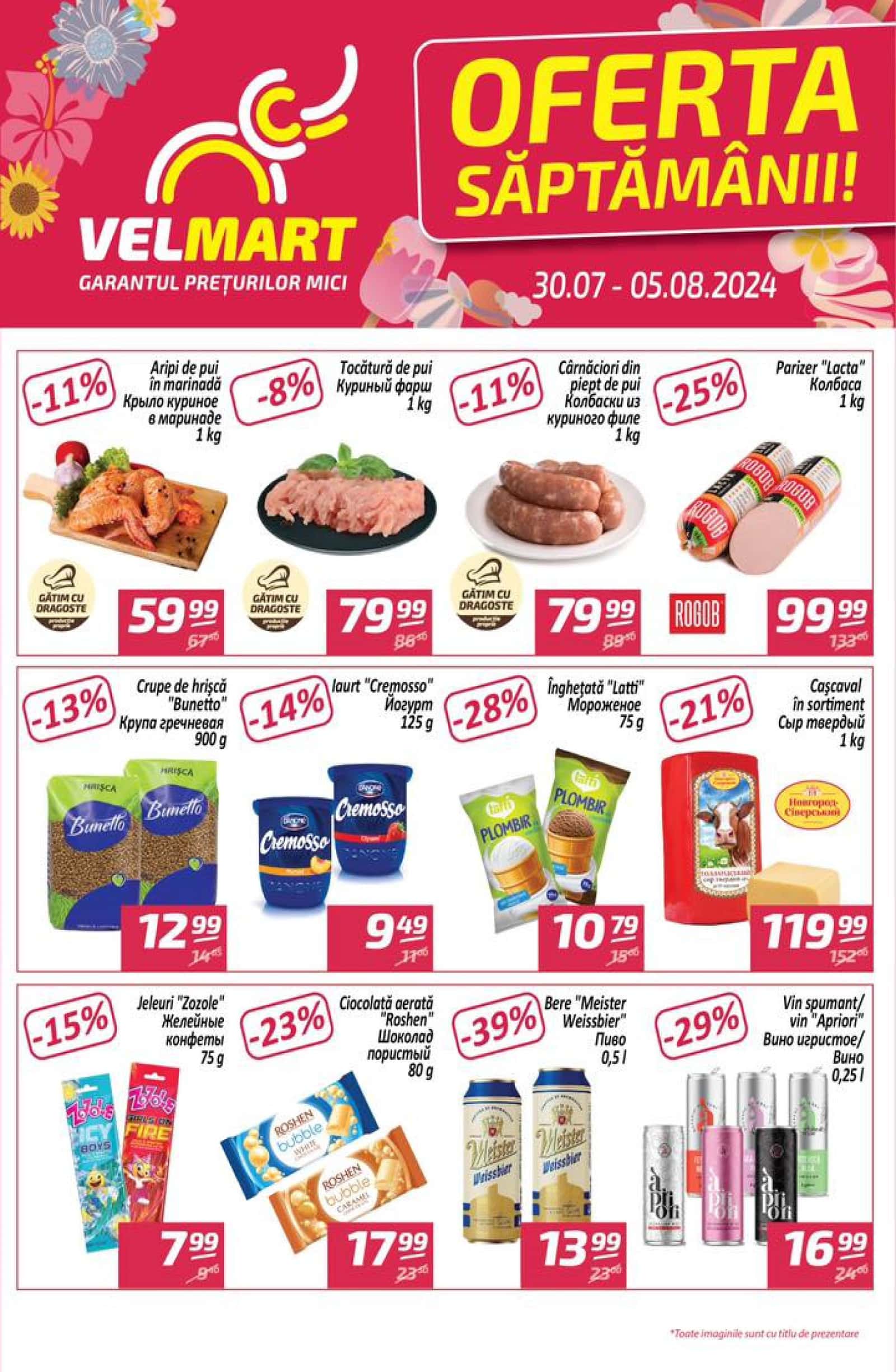 Răsfoiți acest catalog Velmart actual în perioada 30.07.2024 - 05.08.2024 pentru a vedea ultimele oferte. În paginile 4 revistei online veți găsi cele mai recente cataloage și oferte din categoria Supermarketuri.