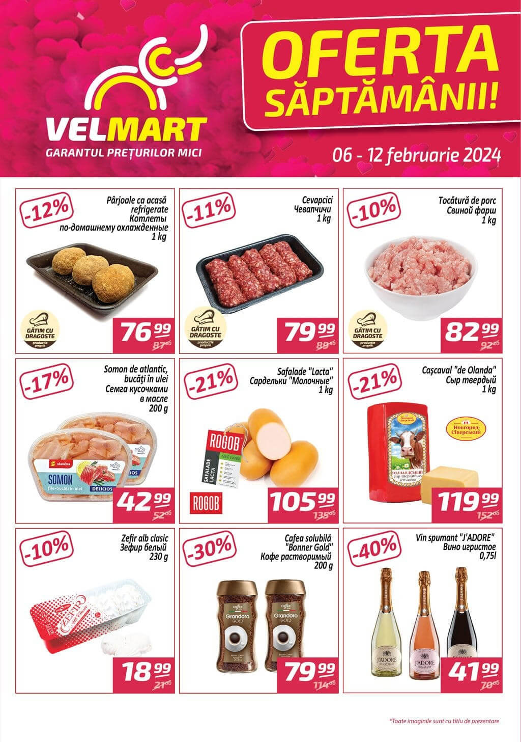 Răsfoiți acest catalog Velmart actual în perioada 06.02.2024 - 12.02.2024 pentru a vedea ultimele oferte. În paginile 4 revistei online veți găsi cele mai recente cataloage și oferte din categoria Supermarketuri.
