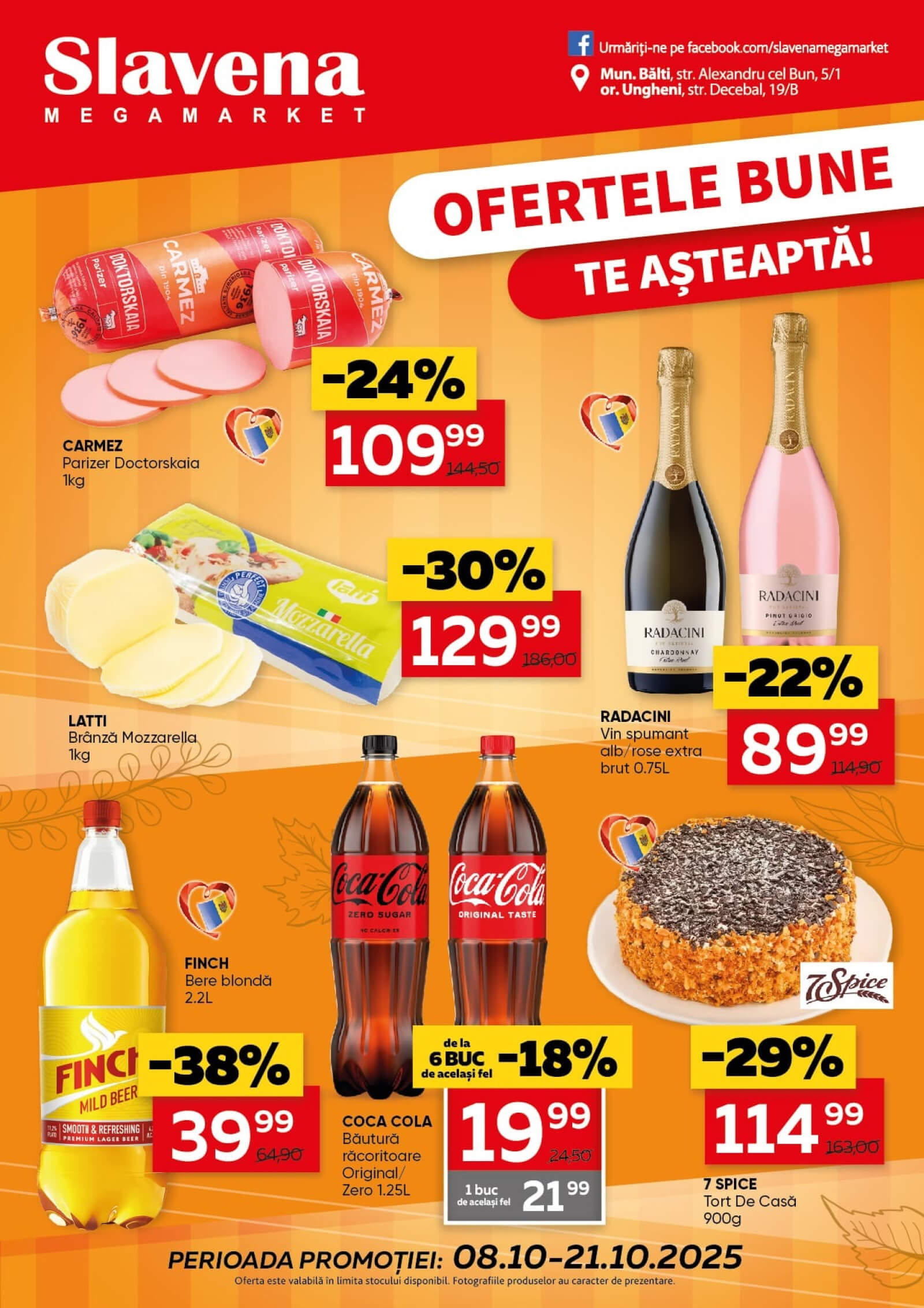 Răsfoiți acest catalog Slavena MegaMarket actual în perioada 08.10.2025 - 21.10.2025 pentru a vedea ultimele oferte. În paginile 16 revistei online veți găsi cele mai recente cataloage și oferte din categoria Supermarketuri. Acest catalog Slavena MegaMarket oferă reduceri la peste 195 produse la reducere Slavena MegaMarket și astfel beneficiați de cea mai bună ofertă la lucrurile pe care le cumpărați! În pagina actuală veți găsi promoții la Carmez, parizer, mozzarella, Brânză, Radacini, vin spumant, vin alb, vin rose, Vin, bere blondă, Bere, băutură răcoritoare, Coca-Cola, Cola, tort. Catalog Slavena MegaMarket oferă multe alte promoții la produse lista o puteti gasi mai jos.