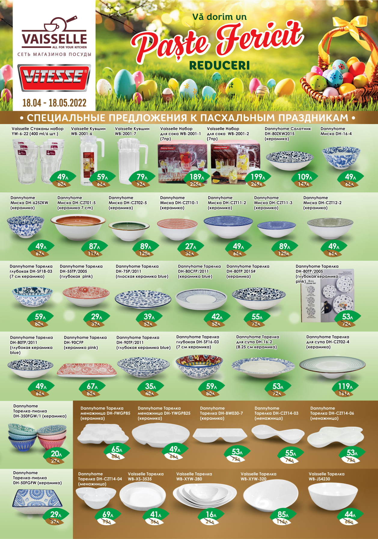 Răsfoiți acest catalog VAISSELLE actual în perioada 16.04.2022 - 18.05.2022 pentru a vedea ultimele oferte. În paginile 0 revistei online veți găsi cele mai recente cataloage și oferte din categoria Bricolaj.