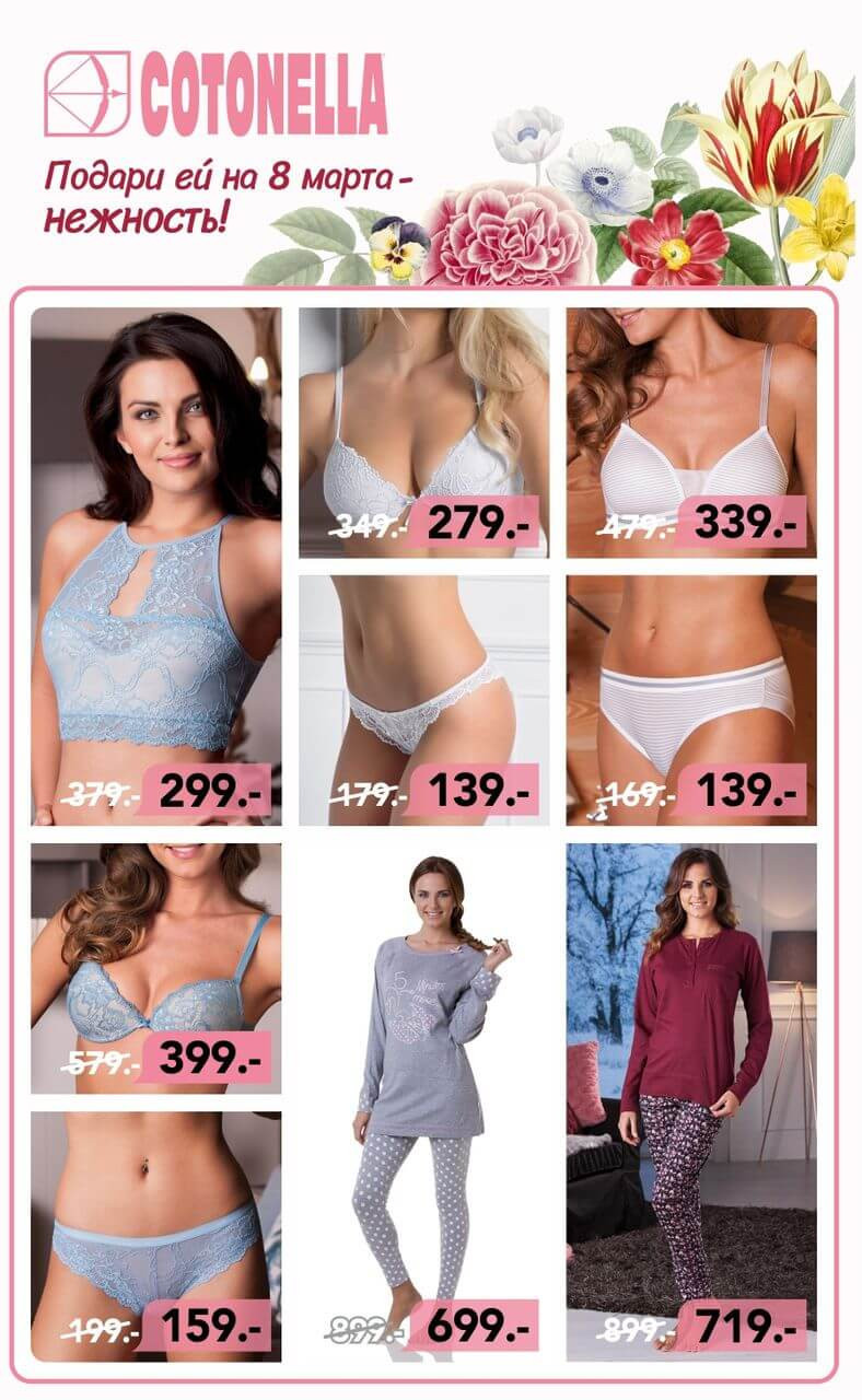Просмотрите этот каталог Cotonella, действительный от 02.03.2019 до 10.03.2019, чтобы увидеть последние предложения. На страницах 0 актуального каталога вы найдете свежие каталоги и предложения из категории Одежда.