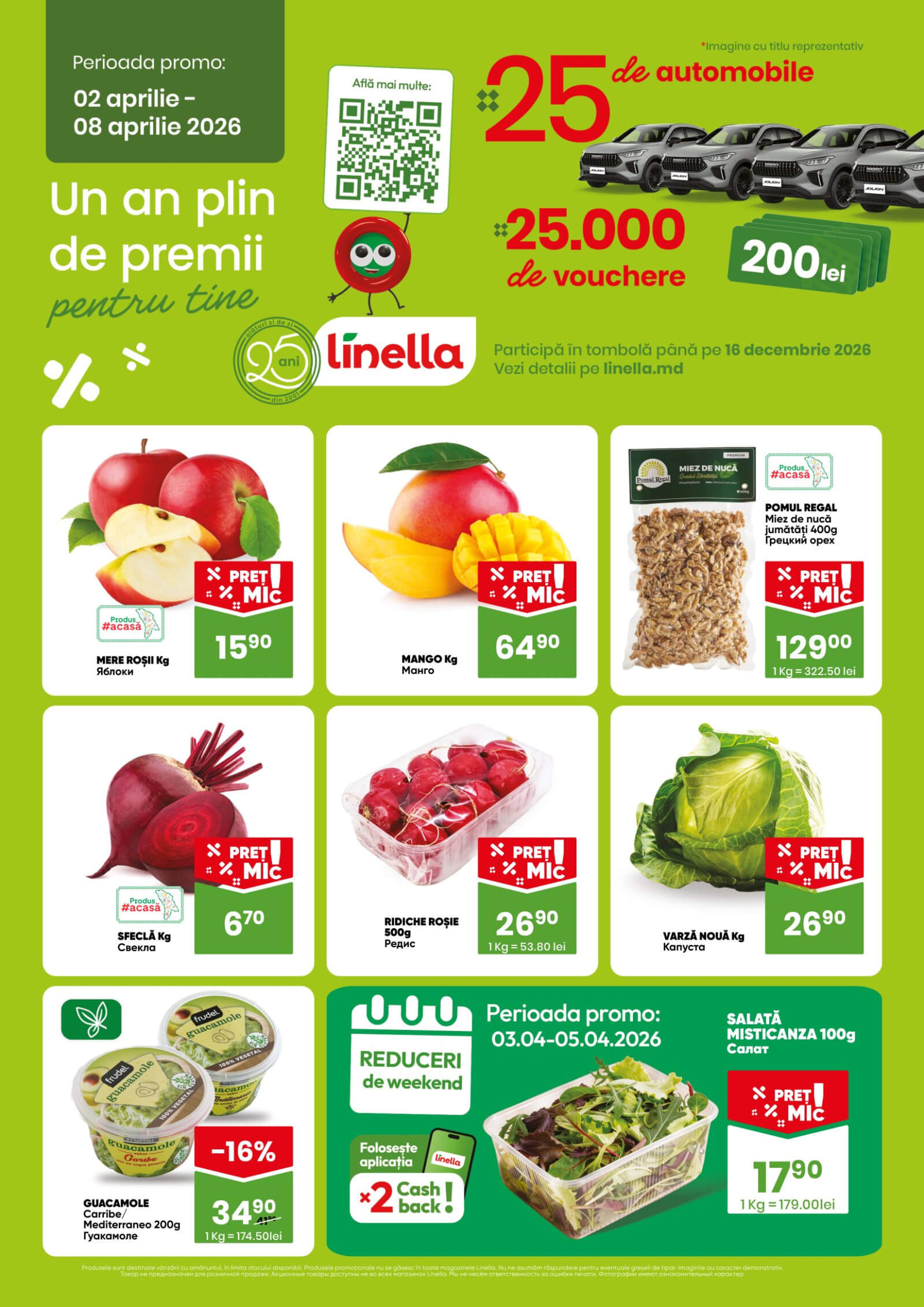 Просмотрите этот каталог Linella, действительный от 02.04.2026 до 08.04.2026, чтобы увидеть последние предложения. На страницах 2 актуального каталога вы найдете свежие каталоги и предложения из категории Супермаркеты. Этот каталог Linella предлагает скидки на более чем 54 товары, так что вы получите лучшее предложение на вещи, которые вы покупаете! На текущей странице вы найдете акции на Редис, Грецкий орех, Капуста, белокочанная капуста, свекла, салат, манго, яблоки, Кулинарные изделия, Соус гуакамоле, Зелень. Каталог Linella предлагает множество других акций на товары, вы можете найти список ниже.